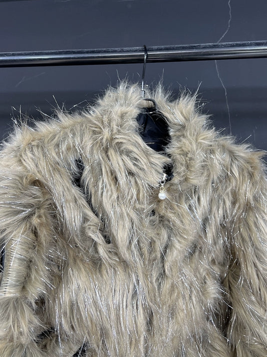 Brown Vintage Faux Fur Lapel Jacket Unisex