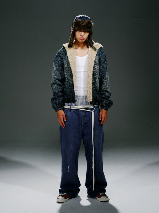 Blue Leopard Hooded Zip Jacket