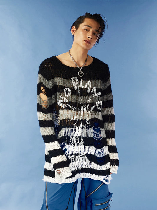 Print Distressed Knit Sweater