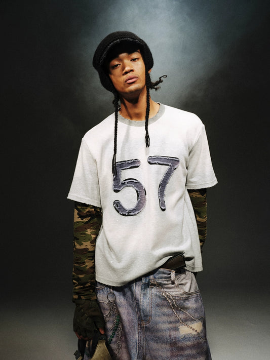 Vintage Camouflage Washed Patchwork Long Sleeve T-Shirt