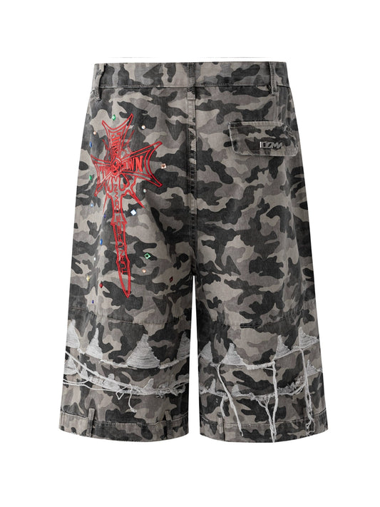 Camouflage Washed Zip Hoodie Army Green Unisex